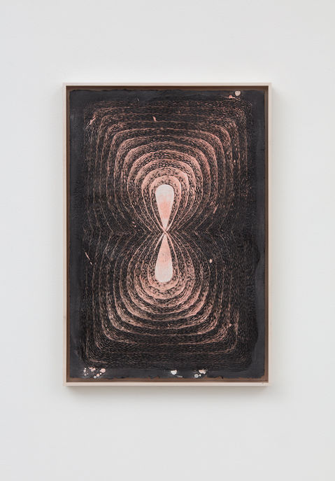 Rubbing taken from the surface of a window with a view of the Los Angeles River outside. Oil pastel on paper 11 x 8.5 inches 2010