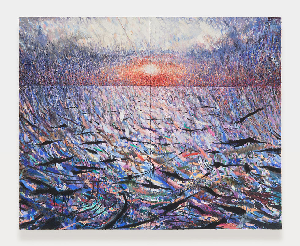 'Two Friends at the Sea' Oil, acrylic and ACP (Activated Carbon Paint) on two canvases 72 x 88 inches 2012-2013